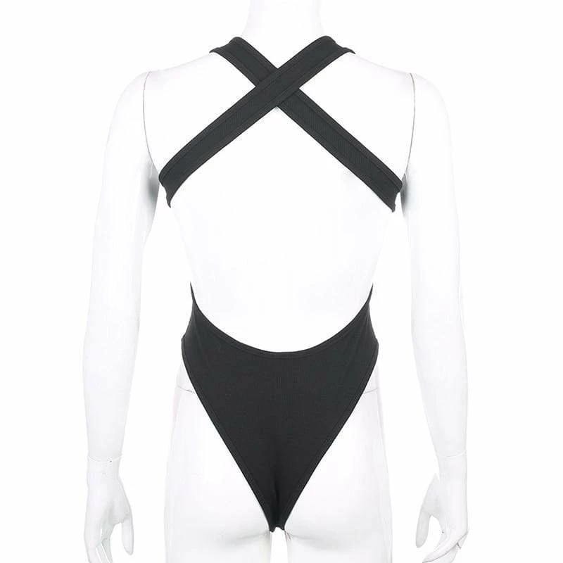 Kinky Cloth Backless Cross Tank Ribbed Bodysuit