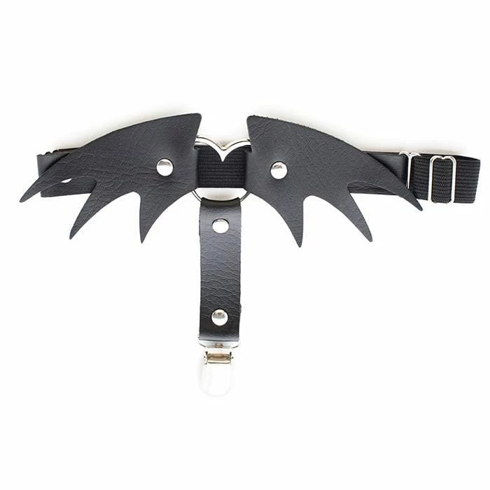 Kinky Cloth Black Bat Wings Single Clip Leg Garter Belt Goth