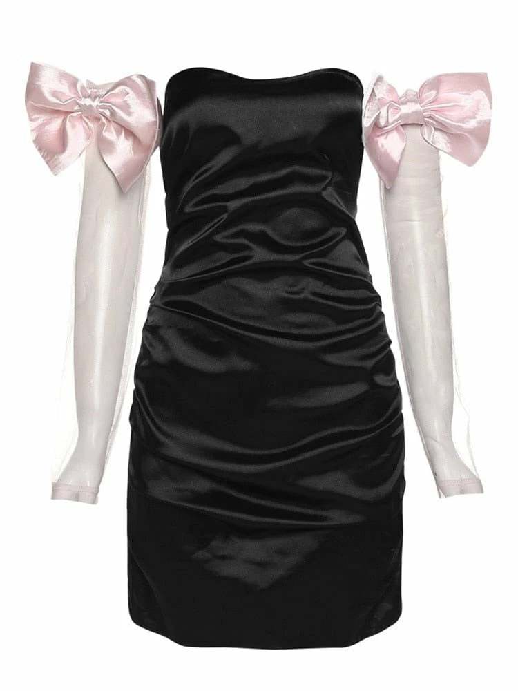 Kinky Cloth Black Dress With Pink Arm Bow Dresses