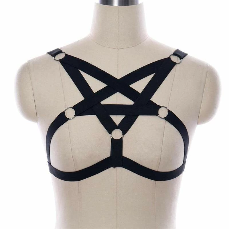 - Show off a goth-punk dungeon princess look. Black Elastic Pentagram Strap Harness is a sexy piece that you can wear over or under any type of top, and goes along perfectly with any outfit