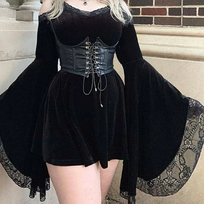SKU: 7018396549208 Categories: Bottoms, Clothing, Dresses, Goth, On Sale, Punk, Styles Tags: Dresses, Flare Sleeve, Goth, Harajuku, High waist, Off shoulder, Punk, Y2K