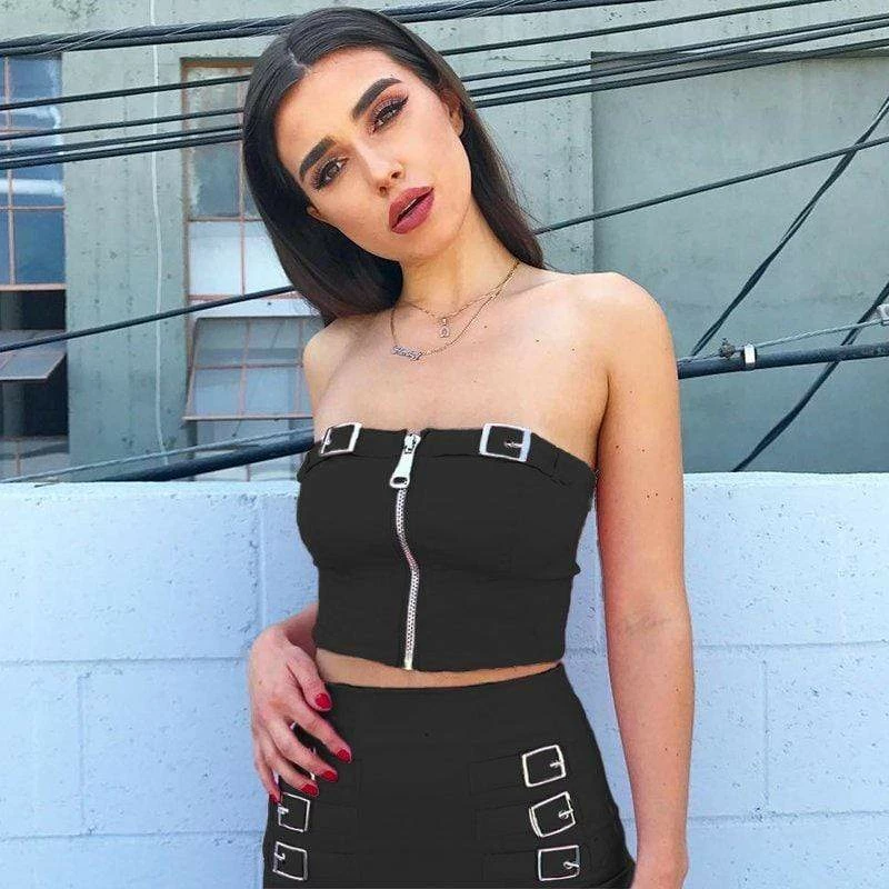 Kinky Cloth Black Tube Zipper Crop Top Top & Tees