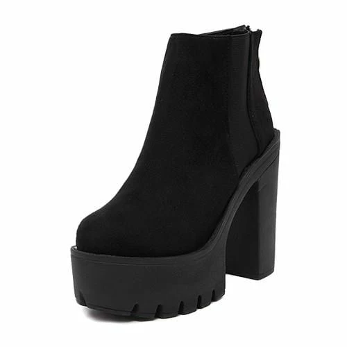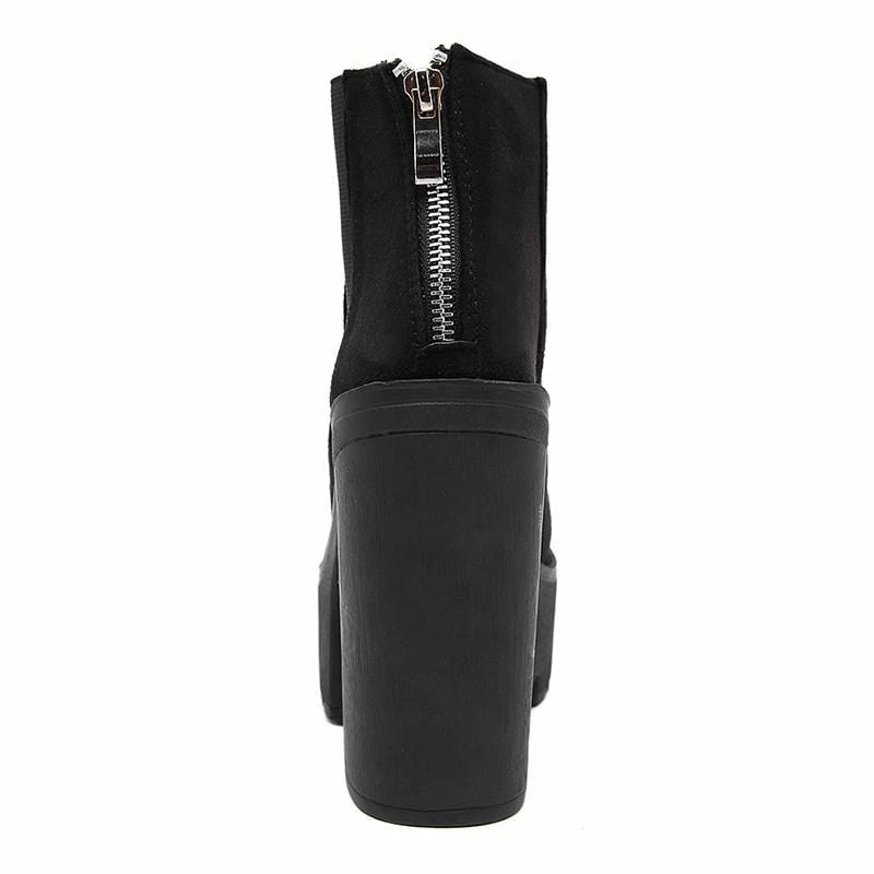 Kinky Cloth Black Zipper Back Platform Boots Footwear
