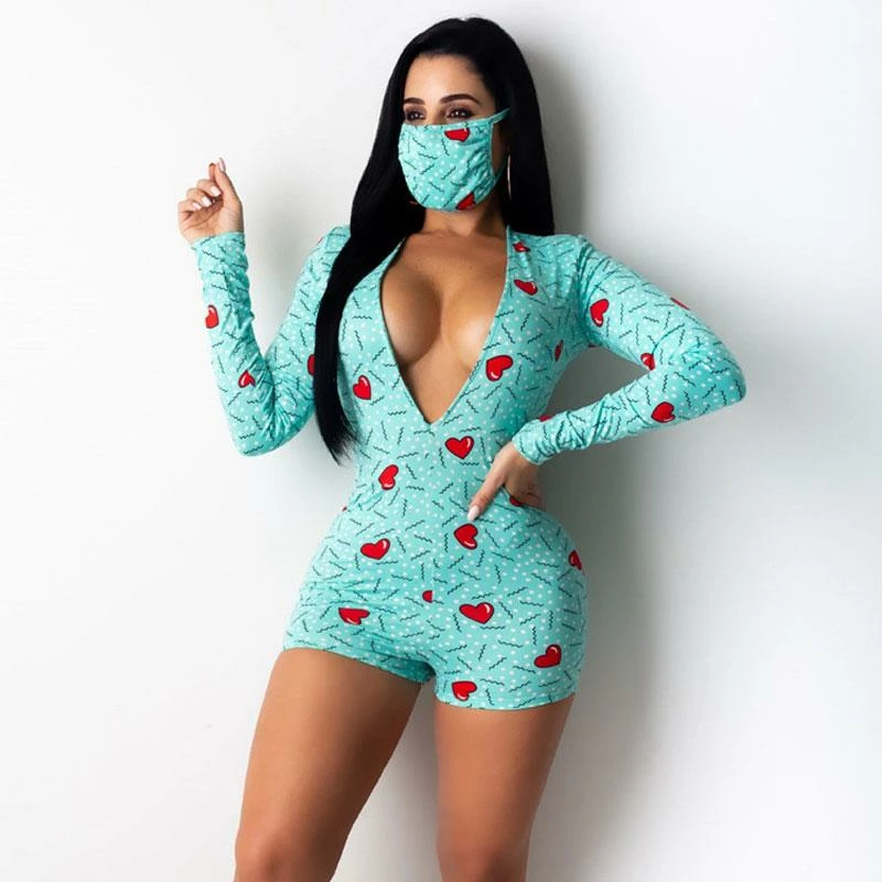Kinky Cloth Bodycon Jumpsuit Sleepwear Patterns With Mask Lingerie & Panties