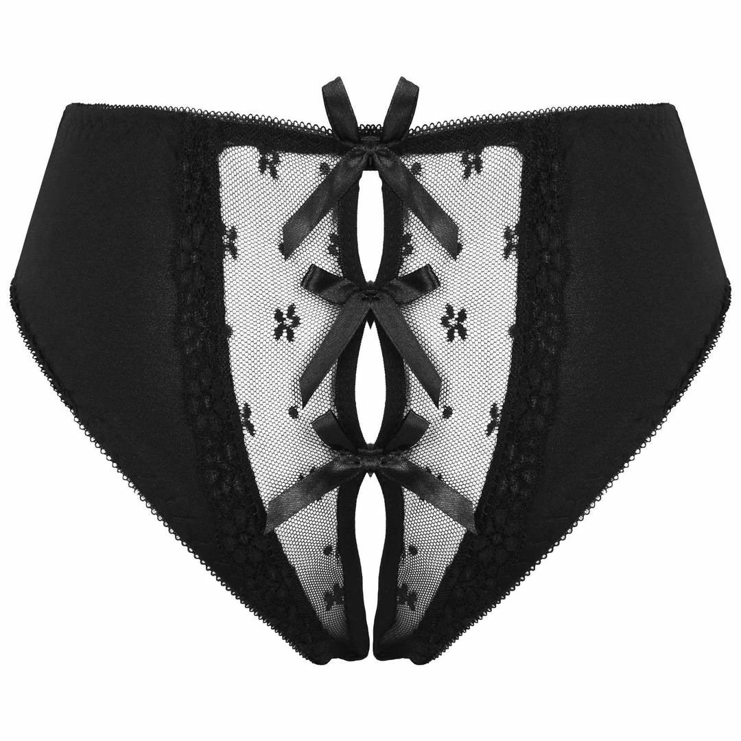 Kinky Cloth Bowknot Hollow Out Crotchless Panties Sissy