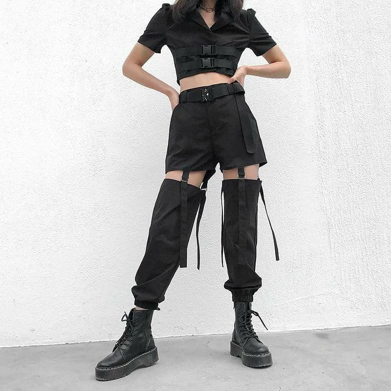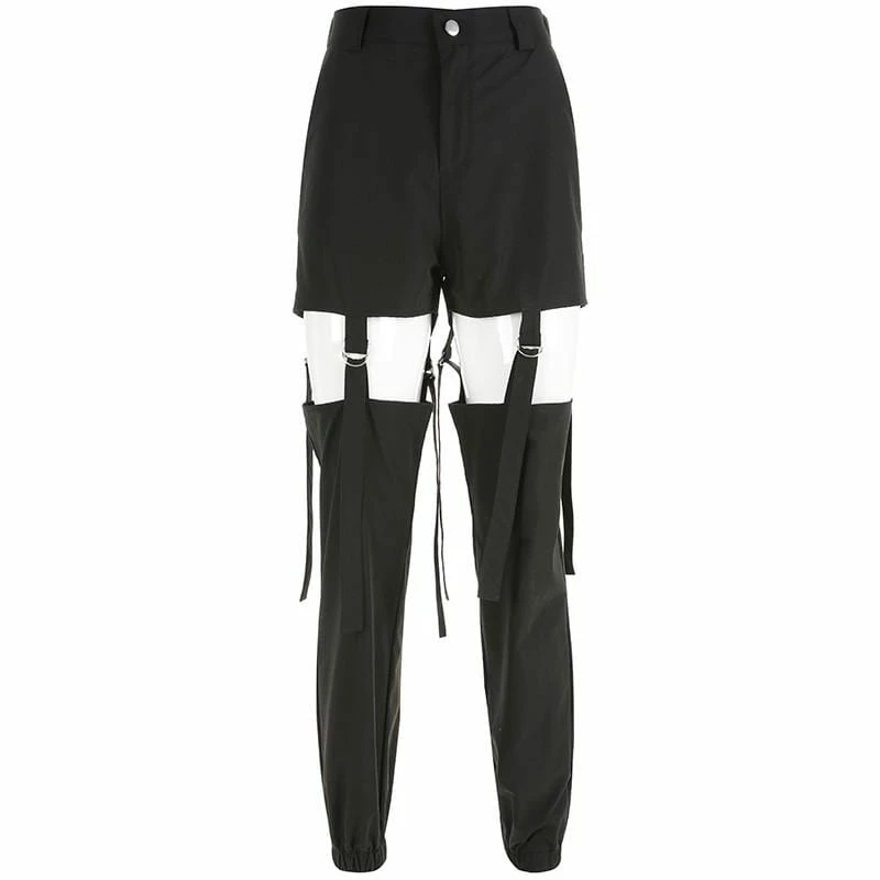 Kinky Cloth Buckle Track Adjustable Hollow Out Pants