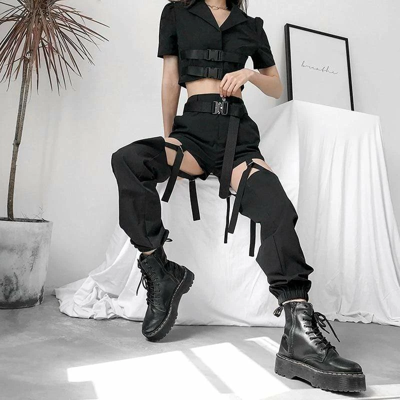 Be the first to review “Kinky Cloth Buckle Track Adjustable Hollow Out Pants” Cancel reply