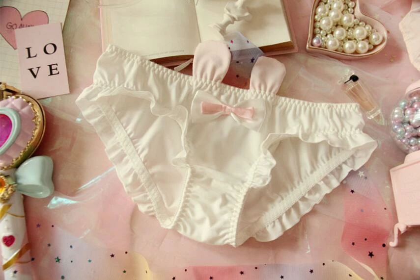- Cute and adorable these ultra-kawaii inspired bunny rabbit underwear come in pastel pink and white.