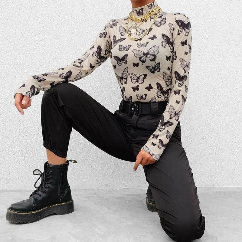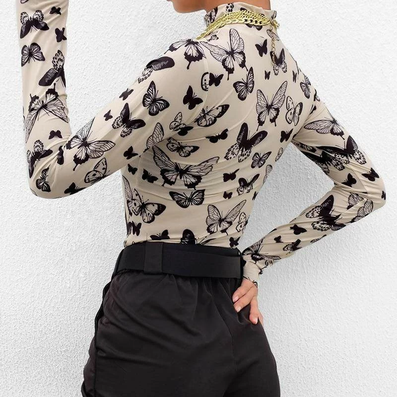 Looking for a stylish and trendy top that will make you stand out from the rest? Look no further than our Butterfly Print Long Sleeve Top. This unique and eye-catching top is made of polyester material and features a turtleneck design. It’s perfect for a night out on the town or a day at the office. You’ll love the way you look and feel in this fashionable and comfortable top. Order yours today!