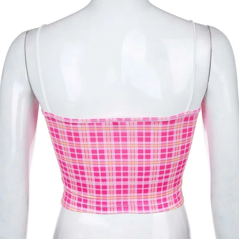 - Be instagram-ready wherever you go! The Checkered Sleeveless Sexy Camis Top is a sexy, cute, crop top that features a meticulous checkered prints, bow decoration, spaghetti strap, and ribbed round neckline. It is a perfect top for an always on-the-go person, like you