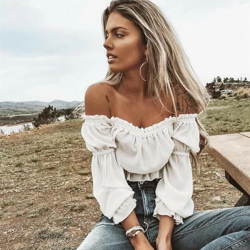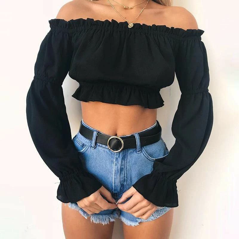 Kinky Cloth Chiffon Off Shoulder Crop Top