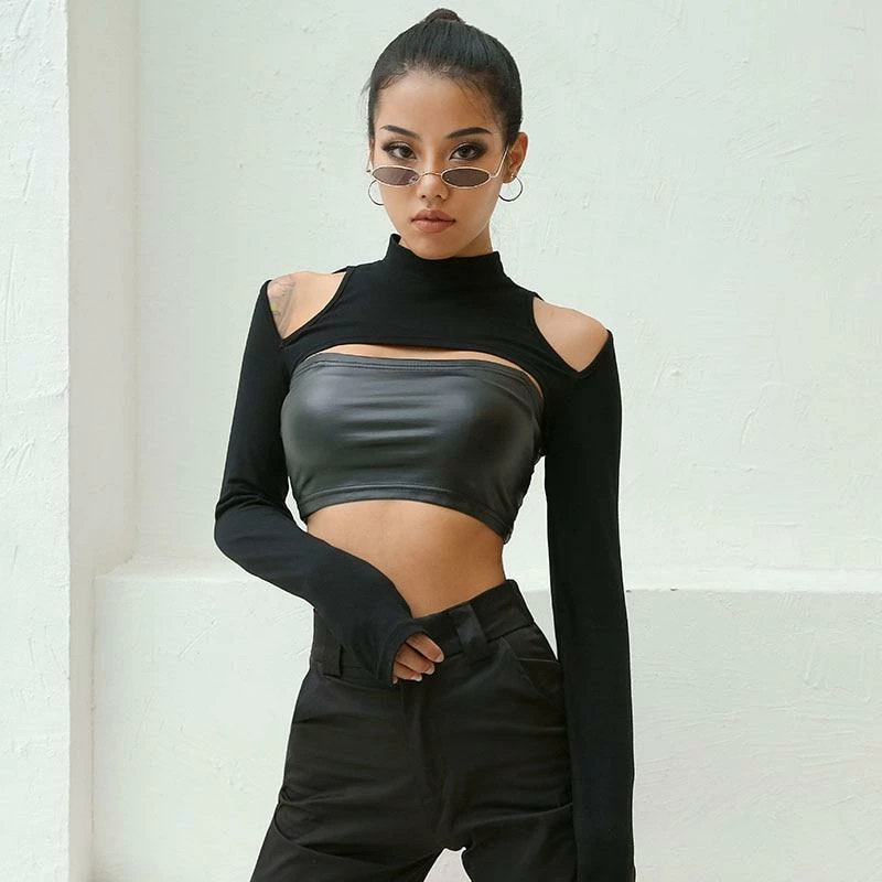 Kinky Cloth Cold Shoulder Stand Collar Mini Top Top & Tees