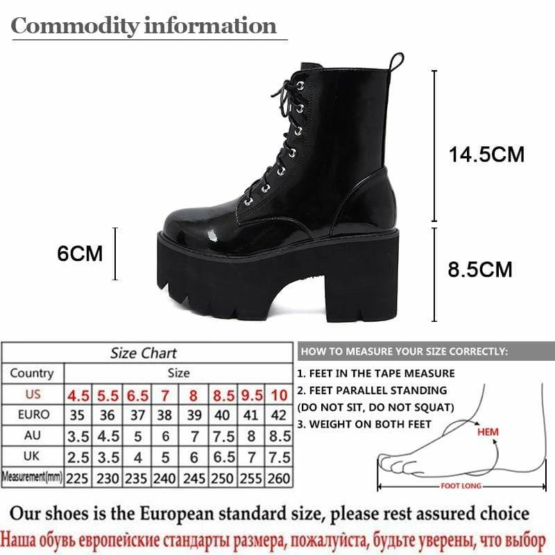 - A punk combat boots that has an approximate platform height of 3cm-5cm, and has a super high heel height of (8cm-up)