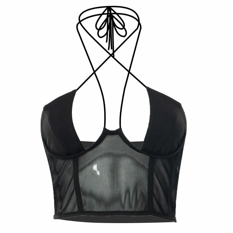 SKU: 7067691548760 Categories: Accessories, Corsets, On Sale Tags: Black, Clubwear, Crop tops, Halter, Mesh, Sheer, Summer, Women