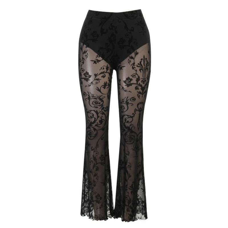 Kinky Cloth Cosplay Black Flared See Through Pants