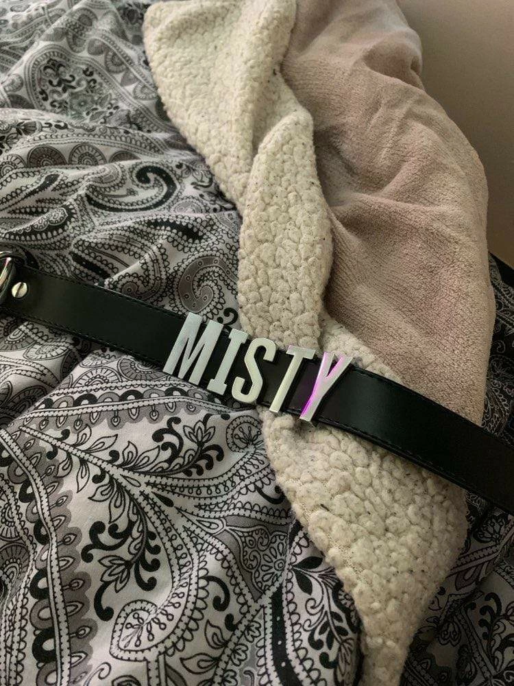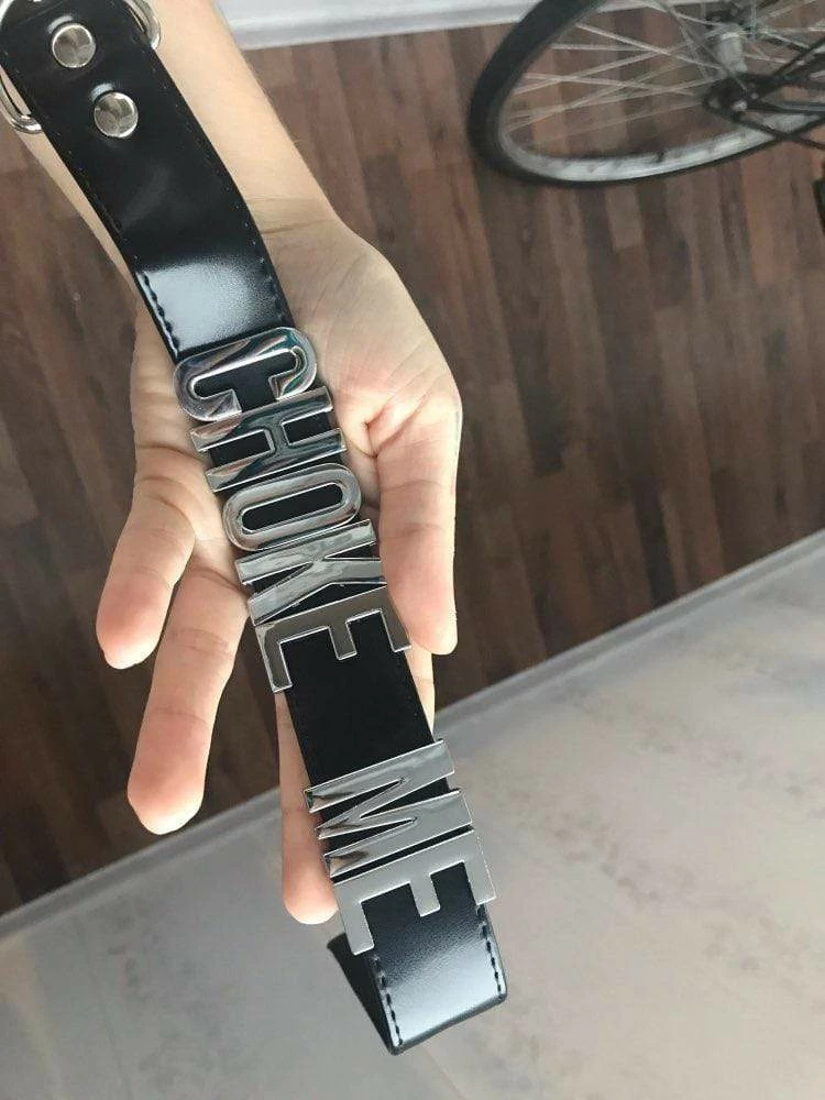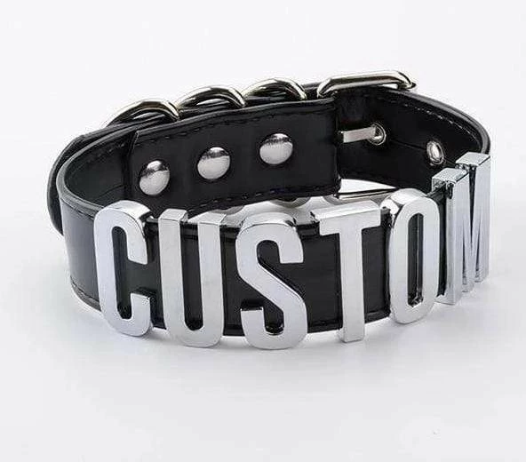- Customize your leather submissive choker collars with silver lettering! Are you a ‘Puppy?’ Are you ‘Owned?’ Are you a ‘Baby Girl?’ Are you a ‘Slave?’ Are you a ‘Slut?’ Or something else?