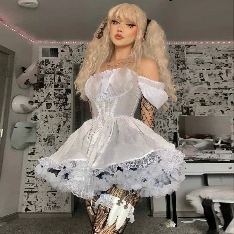 Kinky Cloth Cosplay Lace Trim Bandage Corset Dress