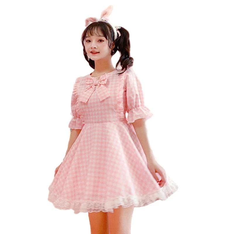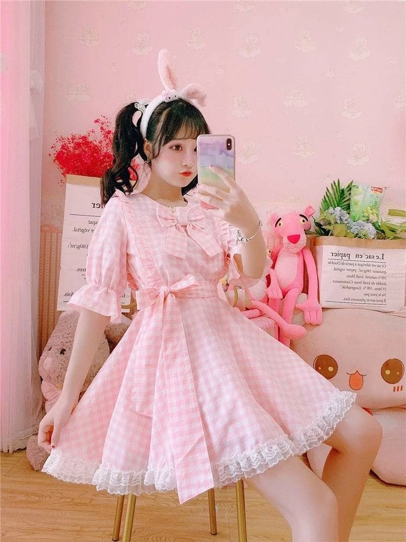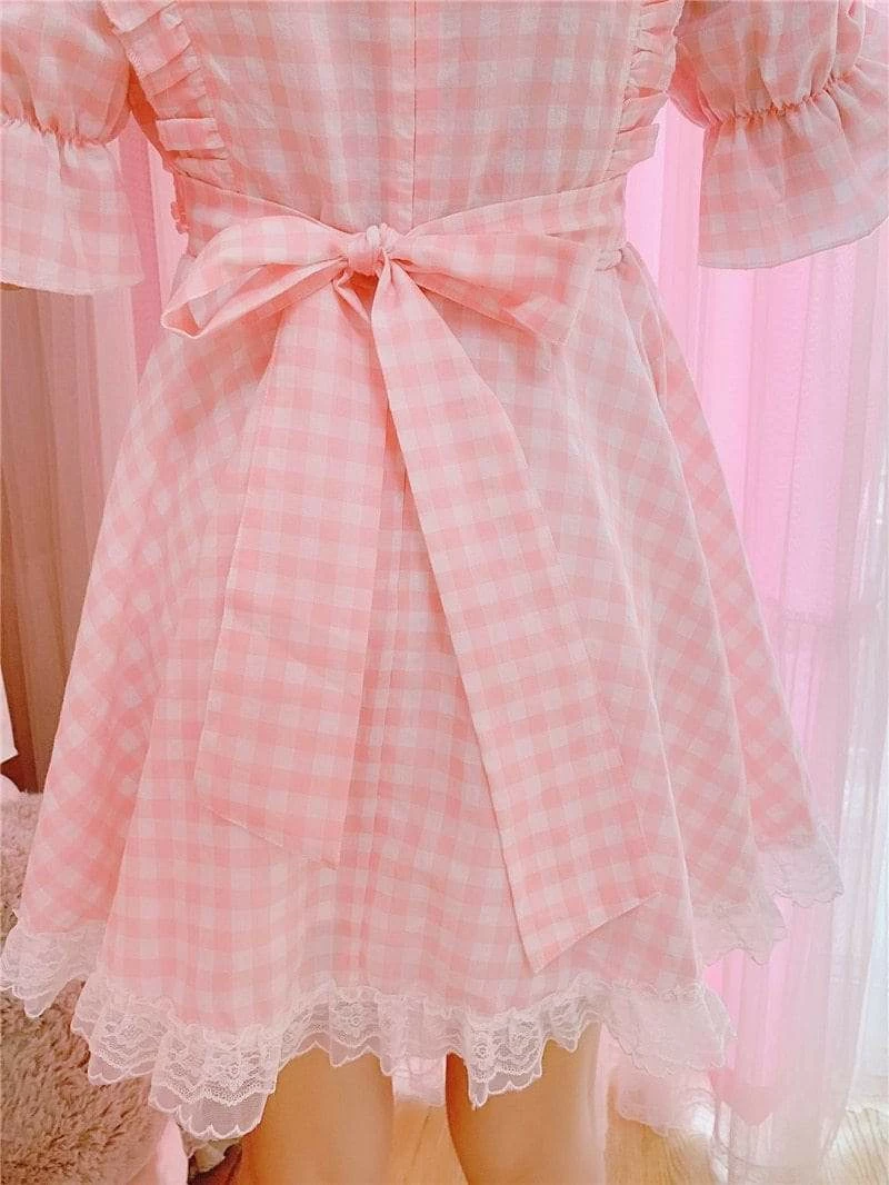 Kinky Cloth Cosplay Sweet Lolita Pink Plaid Dress