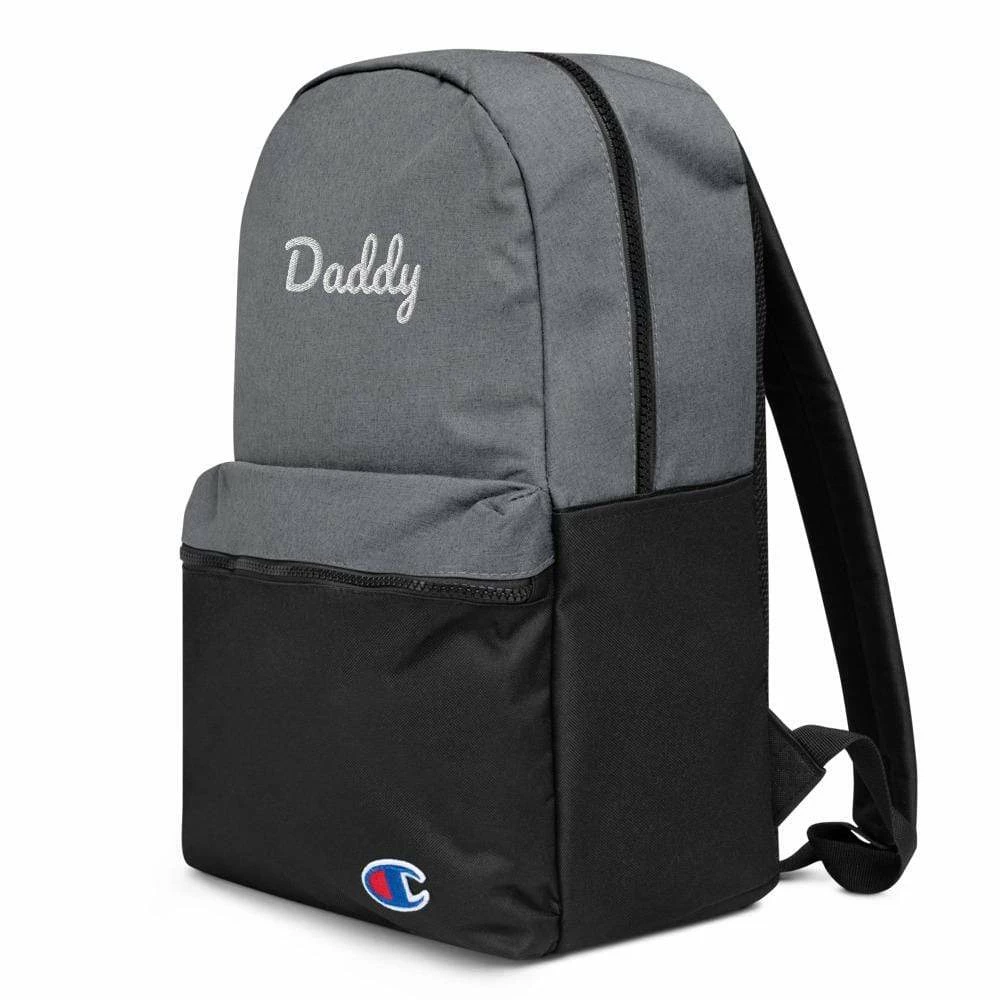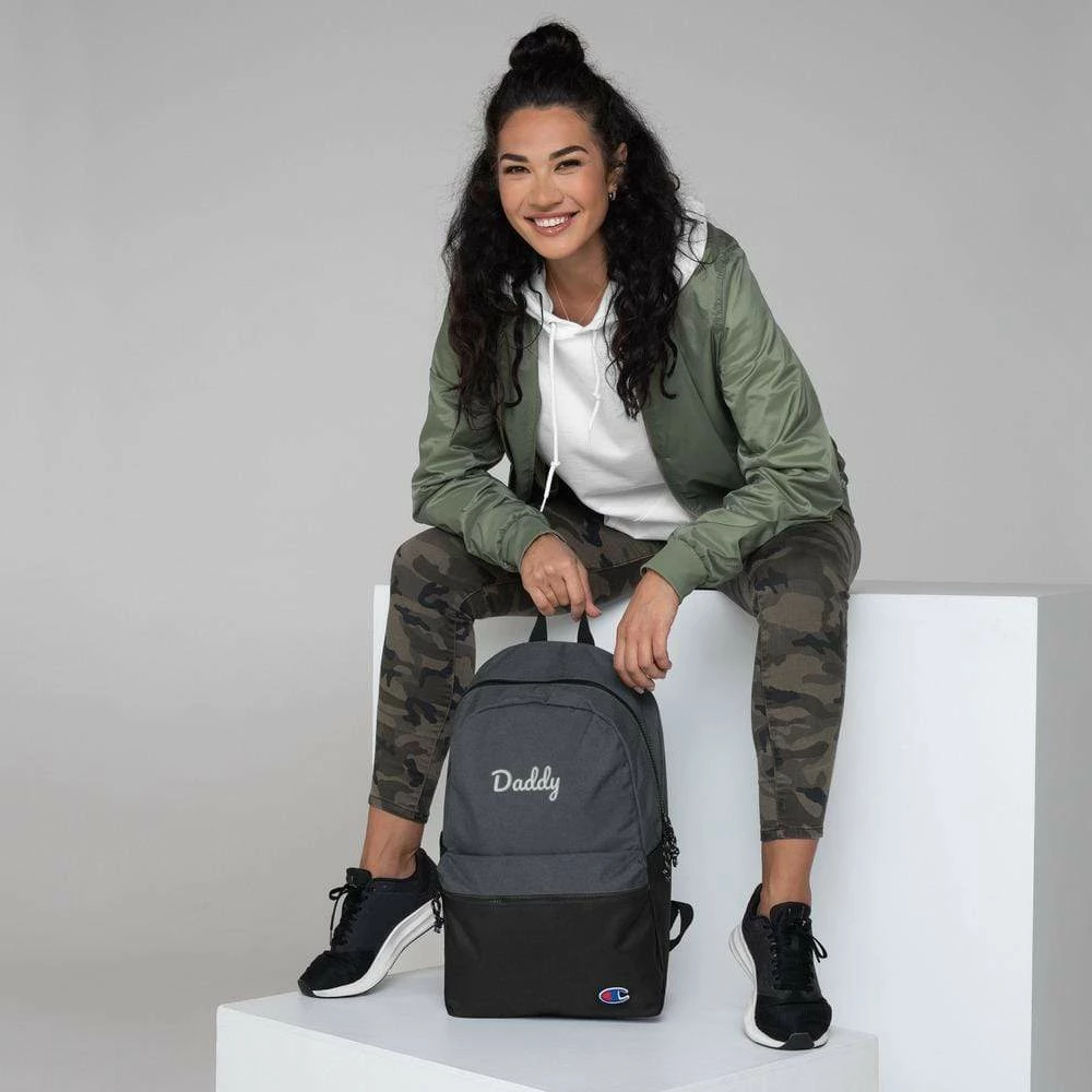 • Padded ergonomic polyester bag straps with plastic strap regulators and Champion brand label on the left strap
