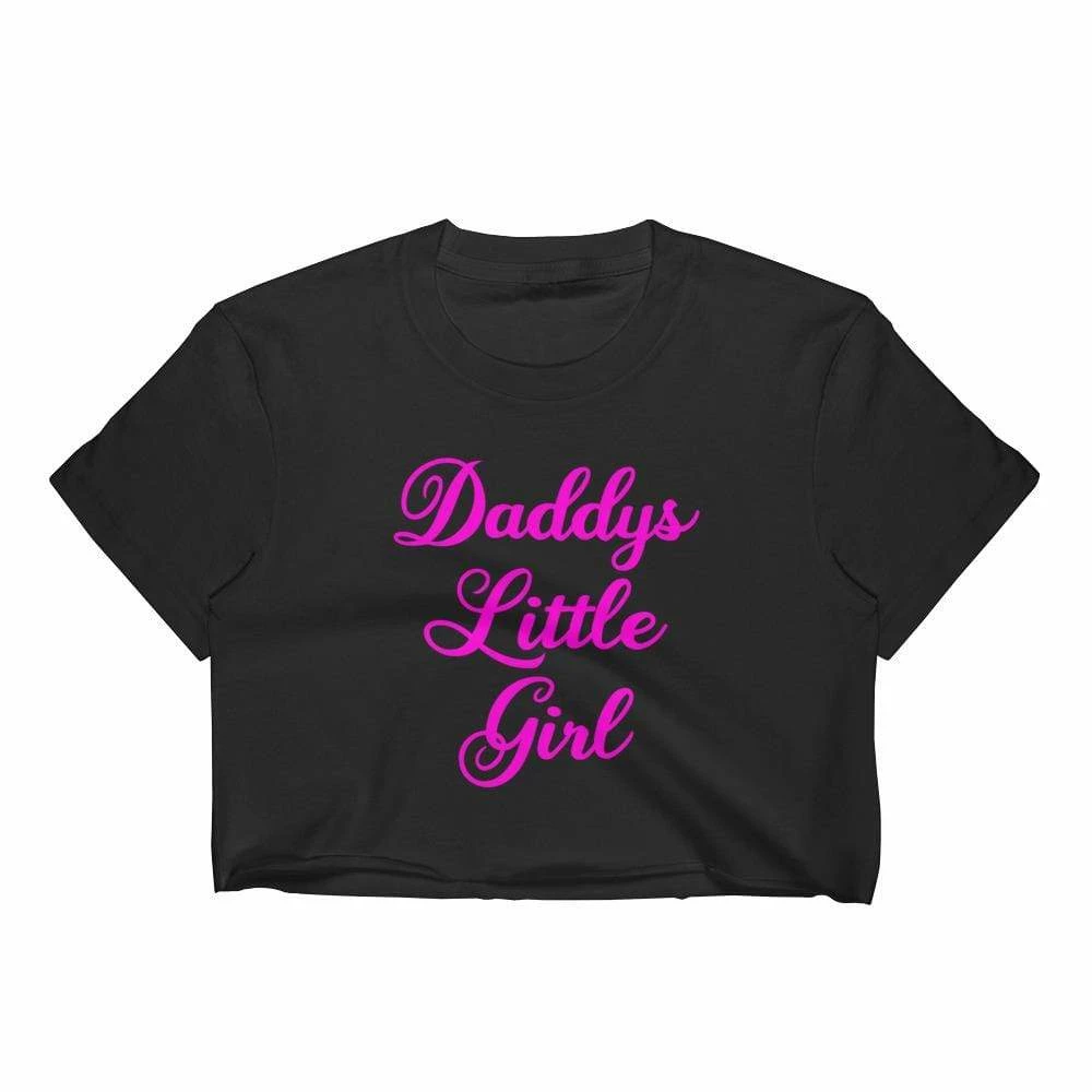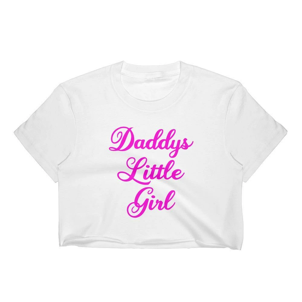 - Daddy’s Little Girl Crop Top Cursive goes along perfectly with all types of bottoms and accessories, but pairs best with a skirt or shorts.