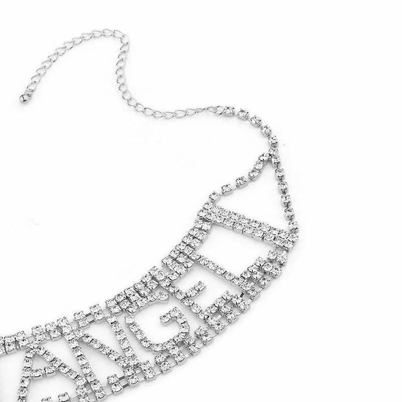 - Angelic and elegant. The Angel Rhinestone Choker embodies classy and unique design. Stand out everywhere you go with this stylish head-turning piece.