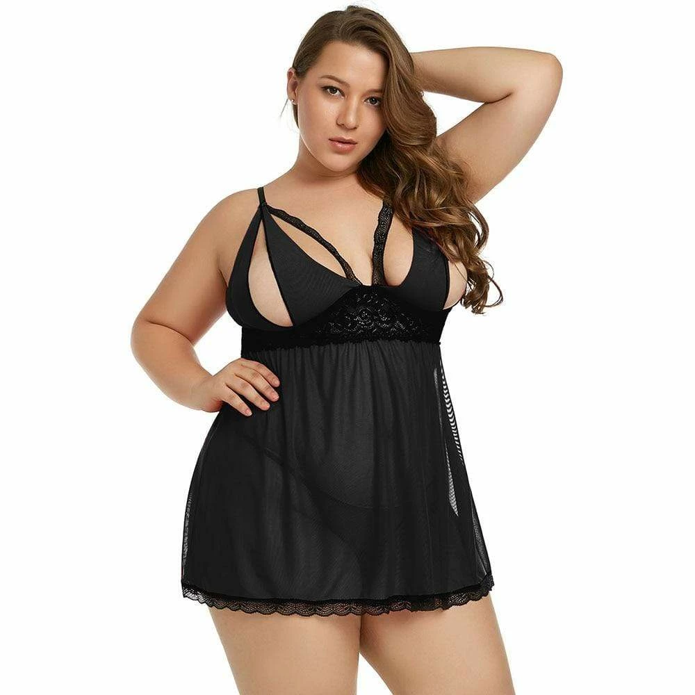 Kinky Cloth Dresses Plus Size Open Cup Nightdress Set