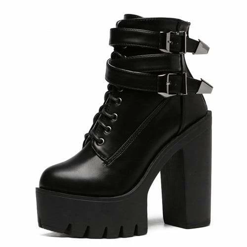 - Looking for an all around pair of boots? This buckled combat shoes feature a sexy laced-up tie and double buckles decoration, stylish platform high heels, and made from a soft leather style
