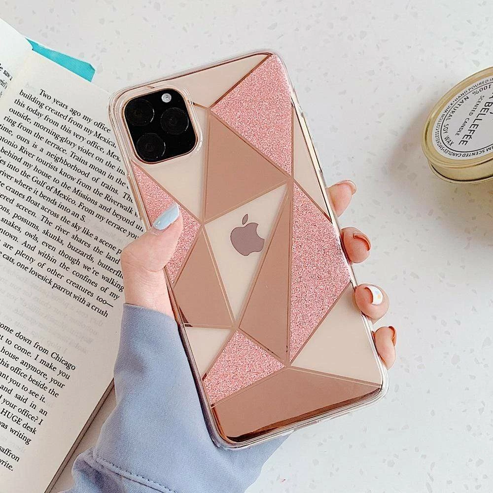 - Stunning, sleek, and fashionable. These iPhone cases with electroplated geometric glitter designs are made from a slim, transparent cover that adds protection to your phone, camera, and ports. You can now be free from unnecessary camera screen scratches