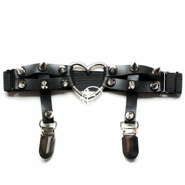 Kinky Cloth Goth Studded Heart Black Garters