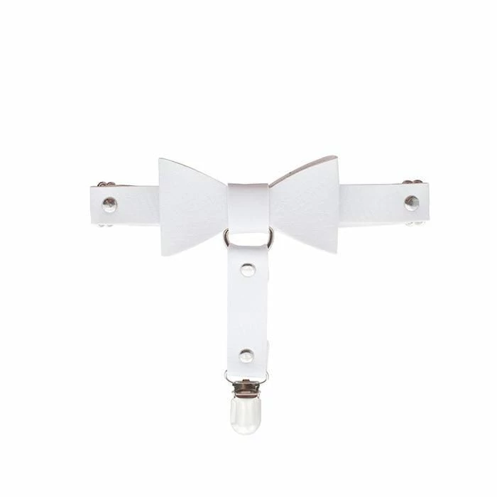 Kinky Cloth Goth White Bow Leather Single Clip Leg Garter Belt