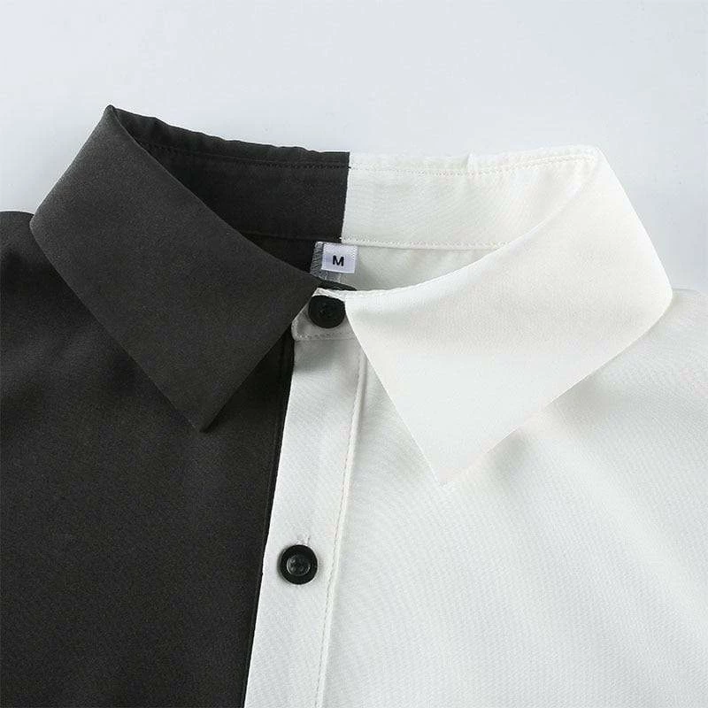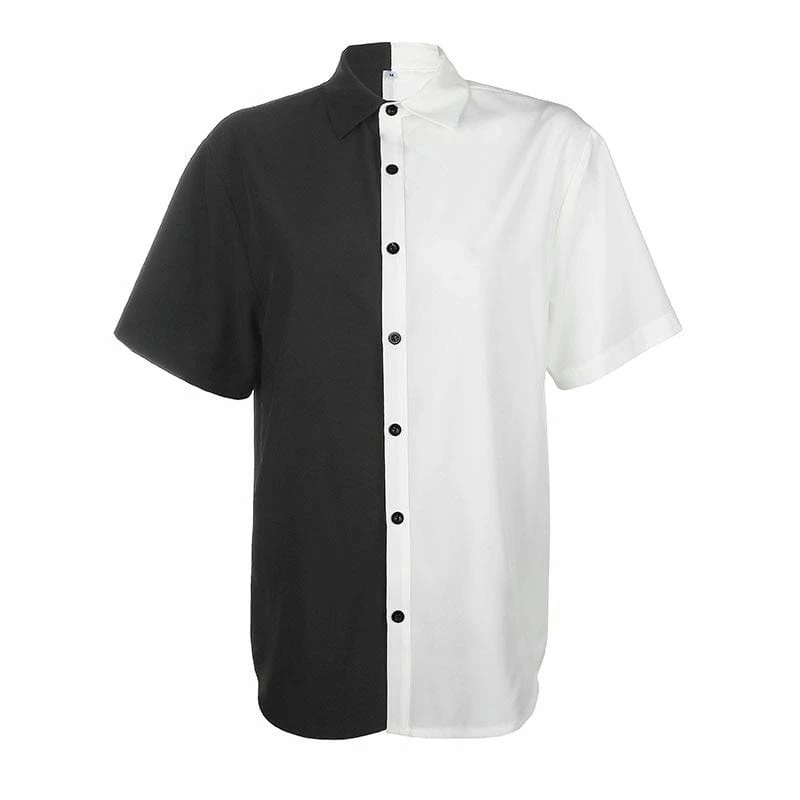 - Can’t choose between black and white? Ladies, you don’t even have to! This Korean inspired dress has half black and half white print that keeps you fashionable and at the same time punk wherever your feet may take you