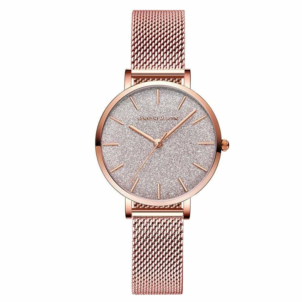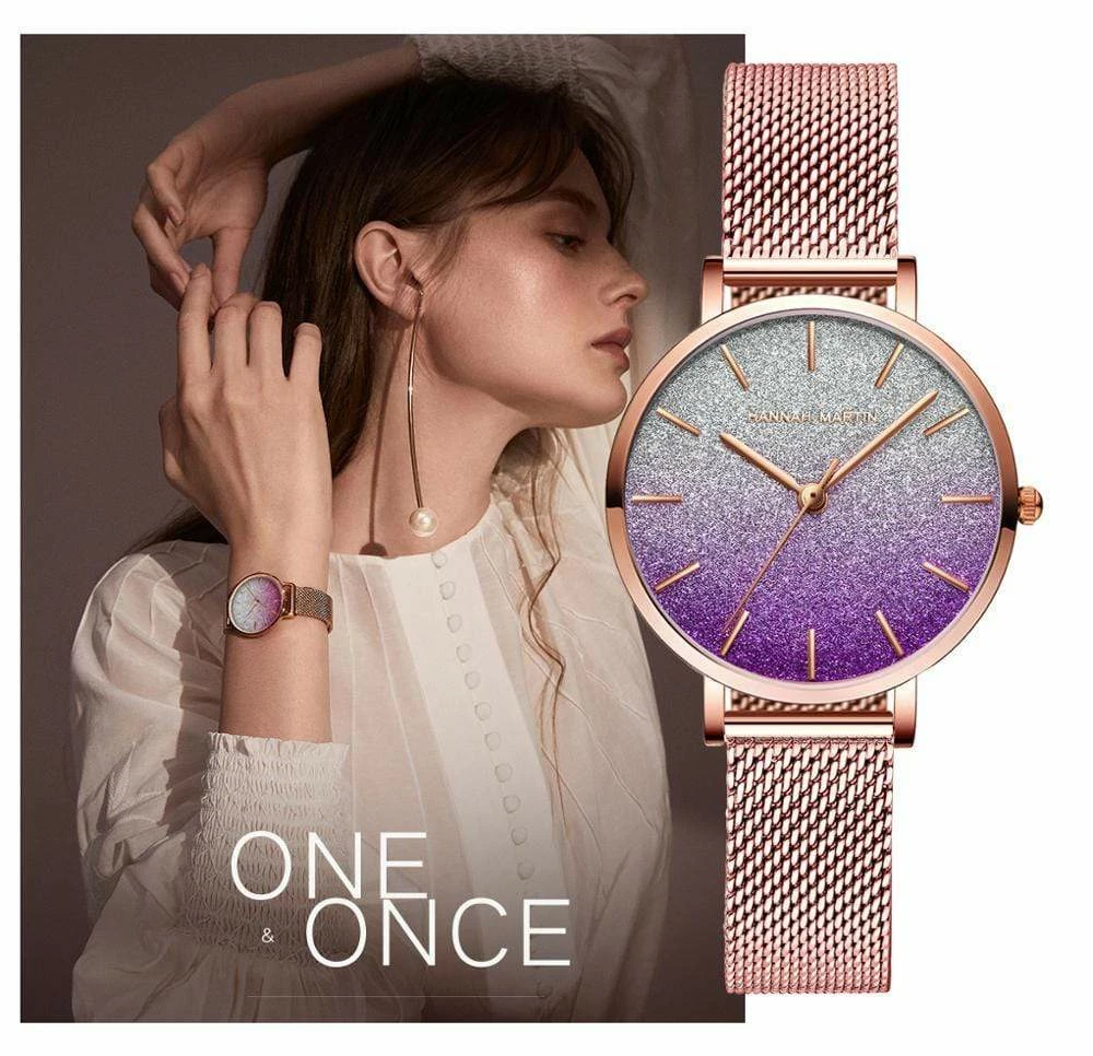 - Starry, attractive, and elegant. This Hannah Martin Glittery mesh watch is made from a designer brand that does not only care about what is convenient to you, but also how easy it is for you to style these accessories along with your outfits and other jewelry