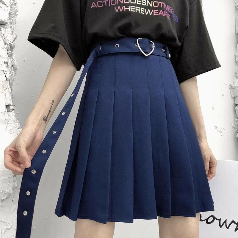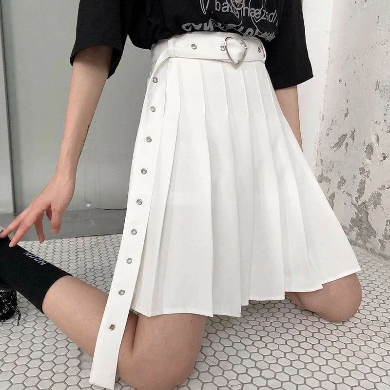 Kinky Cloth Heart Buckle Belt Pleated Skirt Goth