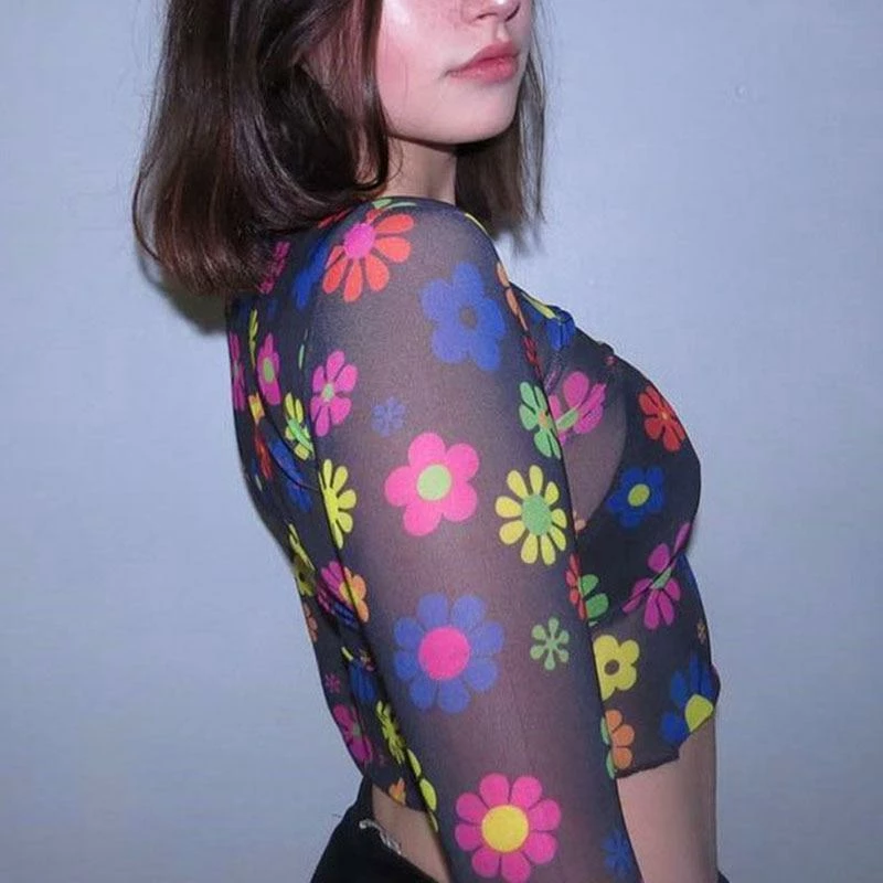 Kinky Cloth Hippy Flower Sheer Top Raves & Festivals