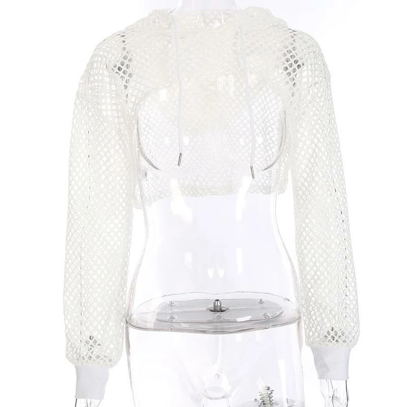 Kinky Cloth Hooded Sheer Mesh Fishnet Top