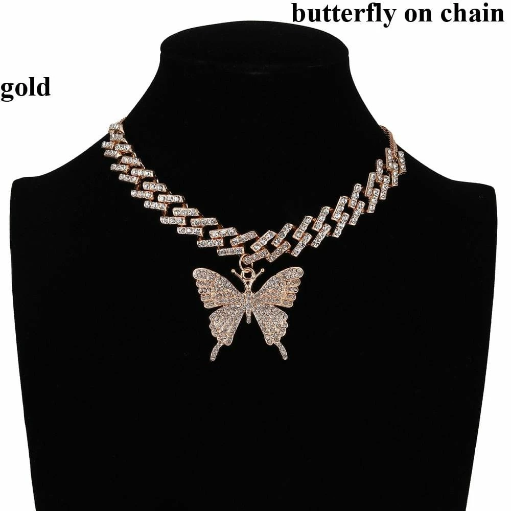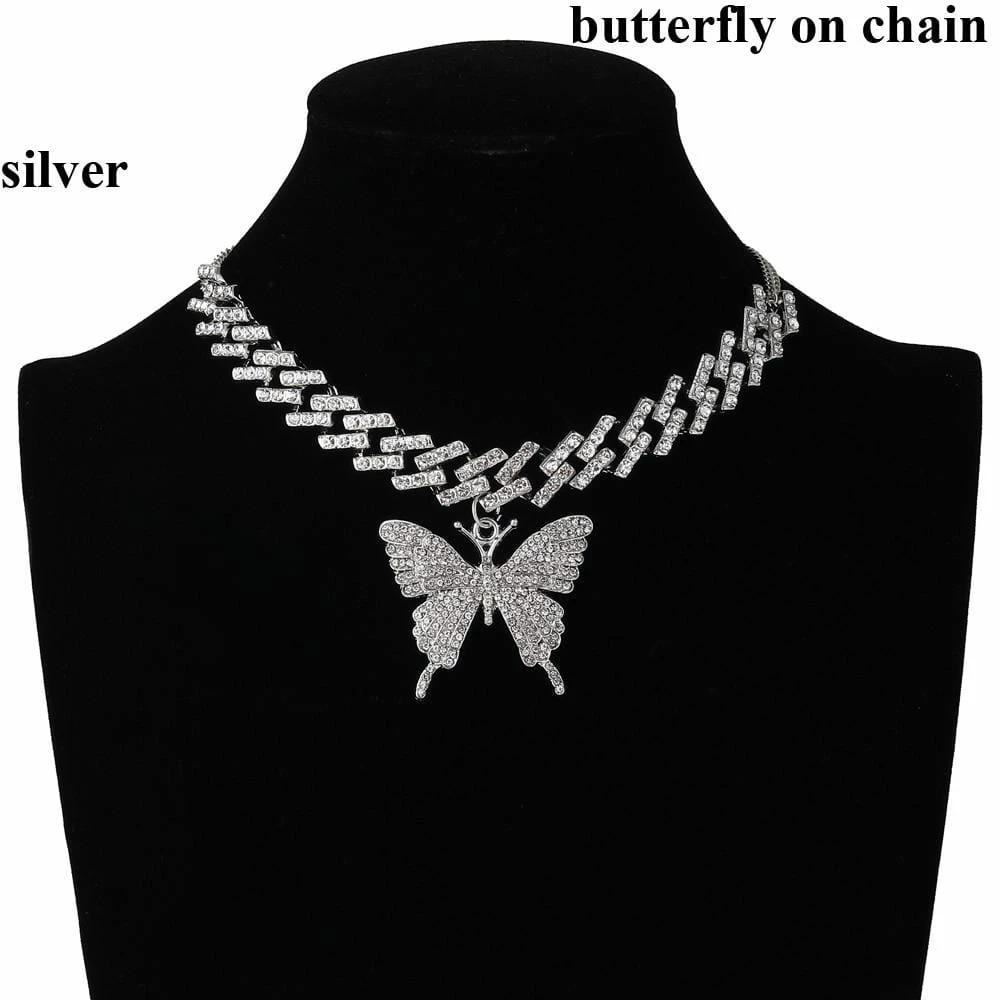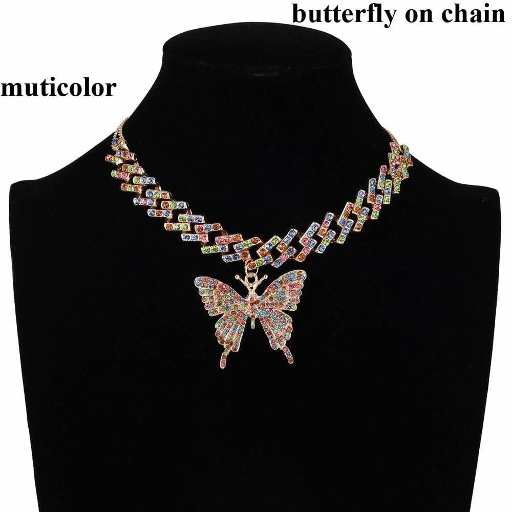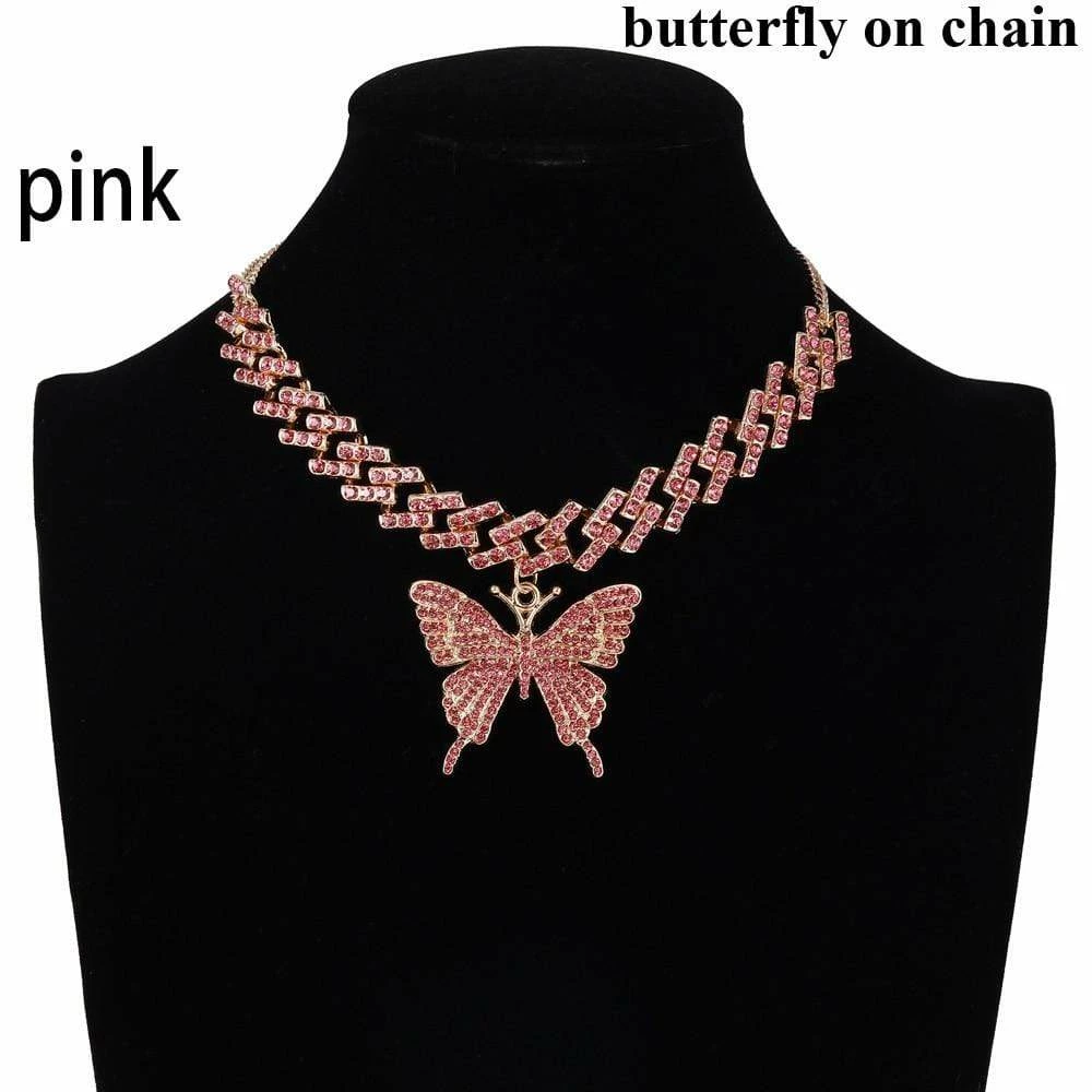 Kinky Cloth Iced Out Butterfly On Chain Necklace