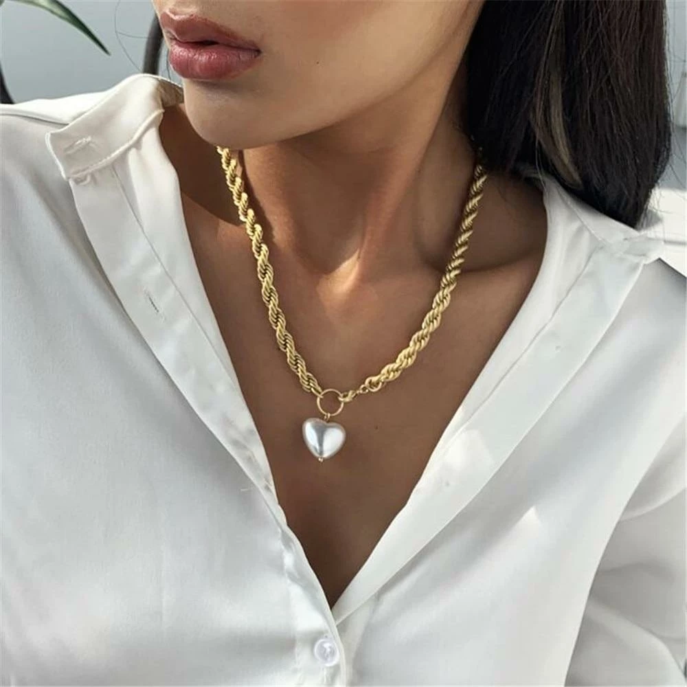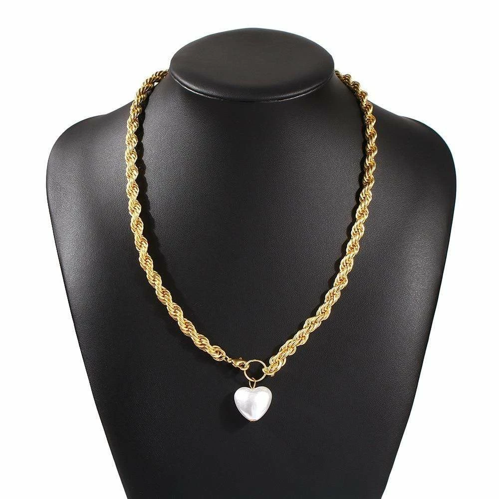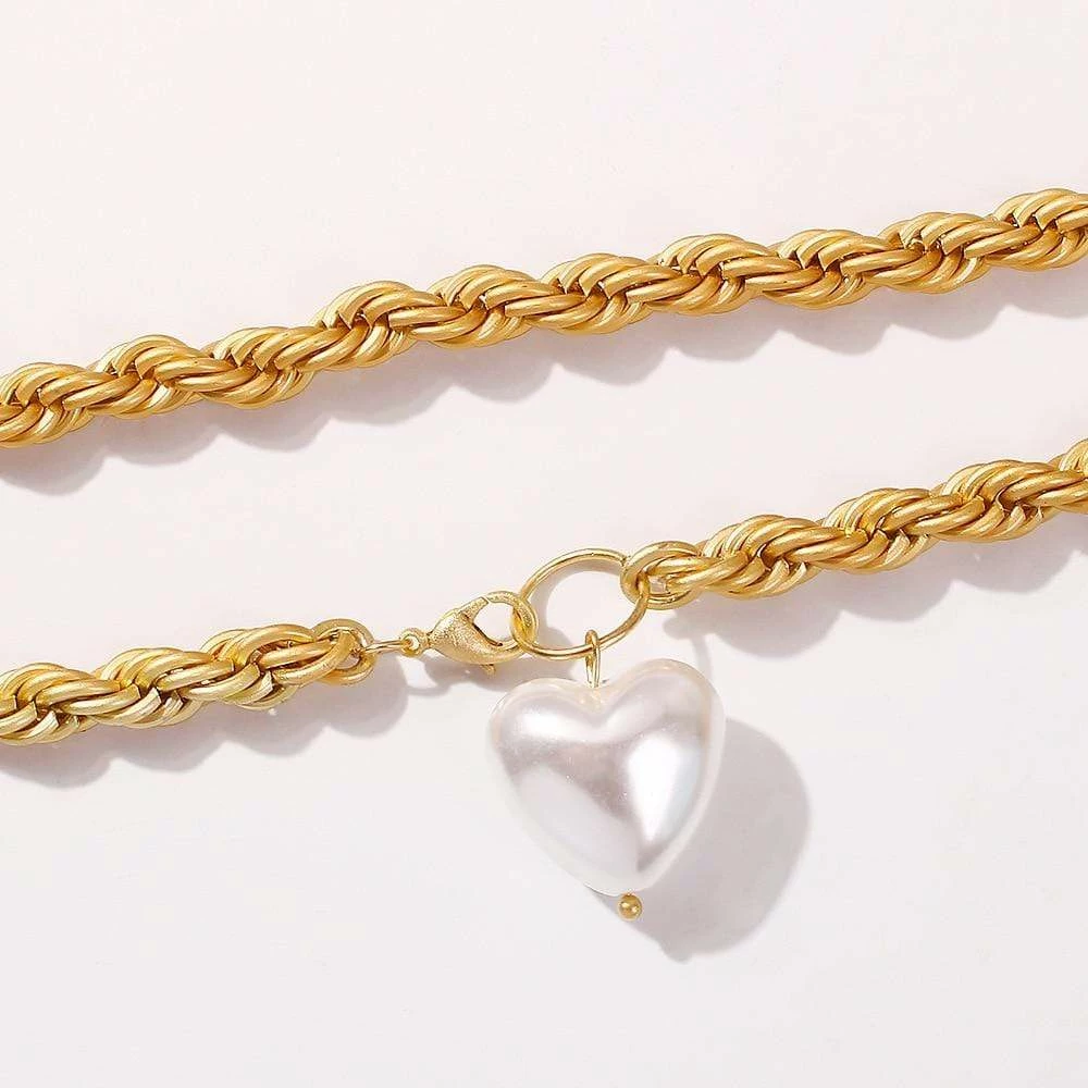 Kinky Cloth Jewelry Pearl Heart Braided Chain Necklace