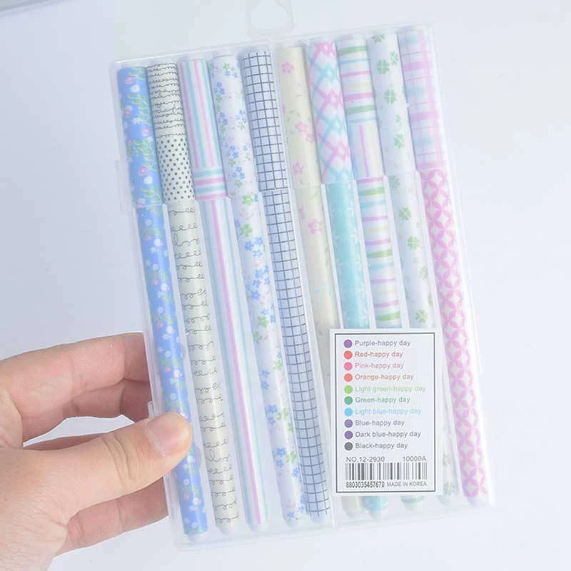 - Flaunt your artistic side on everything you own! The Cute Colored Gel Pen 10pcs/set is very handy, cute and colorful. The set has ten different colors that you can use everywhere you go