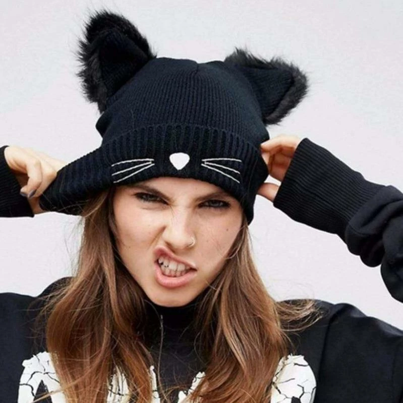 - Colder weather has come upon us, but let’s look on the bright side! Now we can bust out all our riding boots, cozy sweaters, thigh high fuzzy socks, and HATS! So proclaim your Kitty Lover Status with this adorable beanie.