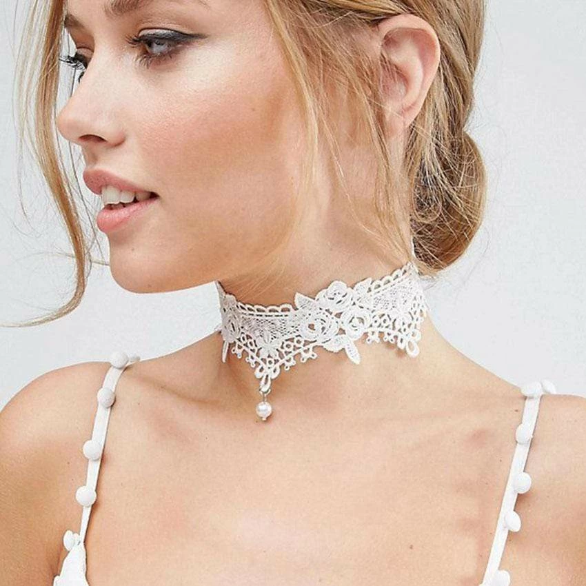 - These delicate chokers are made from meticulously crafted lace material and features a pearl on the middle and an adjustable chain.