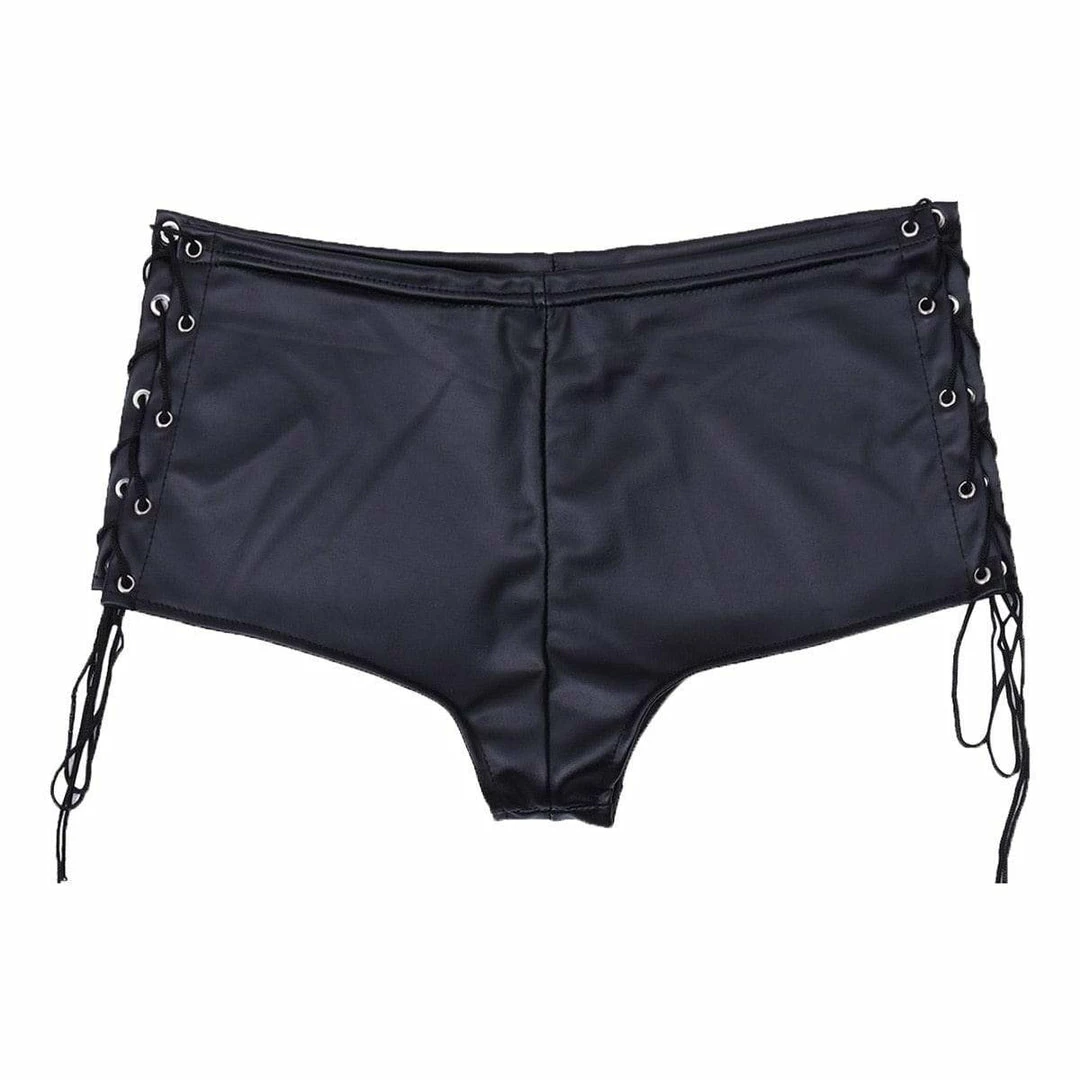 Kinky Cloth Leather Lace Up Hollow Out Side Underwear BDSM