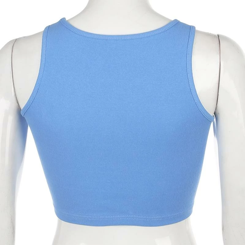 Kinky Cloth Letter Embroidery Ribbed Skinny Tank Top