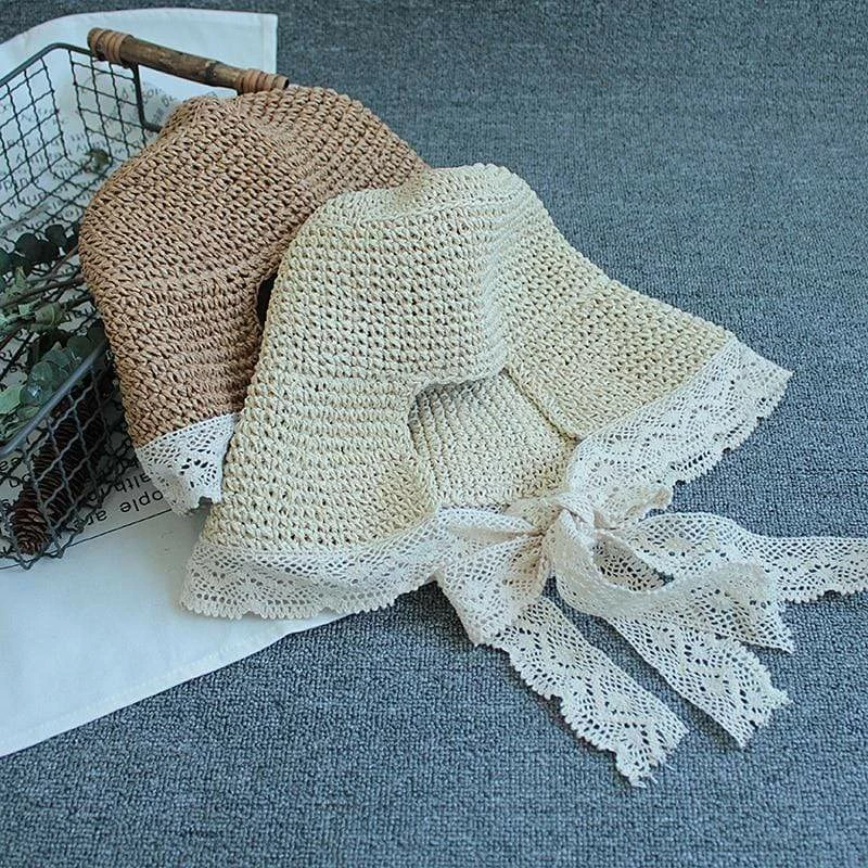 Kinky Cloth Lolita Lace Straw Sun Hat Bowknot Cosplay
