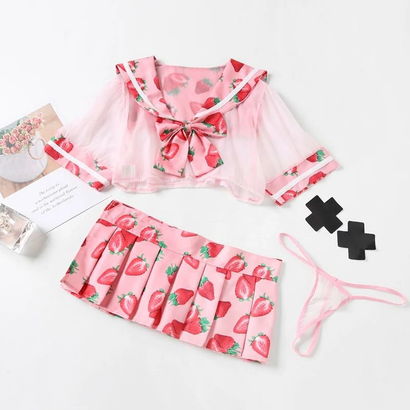 - Sexy, frisky, and cool. This pink, lolita, sailor inspired crop top uniform set, in strawberry prints will surely make add of spice to your intimate time