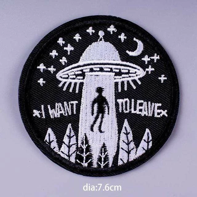 If you’re mind is out of this world, express yourself with this fun and whimsical patch. Reading “I want to leave,” this round fabric patch features an embroidered design of a person being beamed up to an alien UFO. This patch is totally far out and is a great way to customize a favorite item of clothing or backpack. Add some sci-fi vibes to your look!