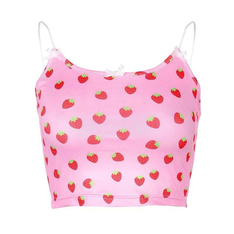 Kinky Cloth Pink Strawberry Bow Crop Top
