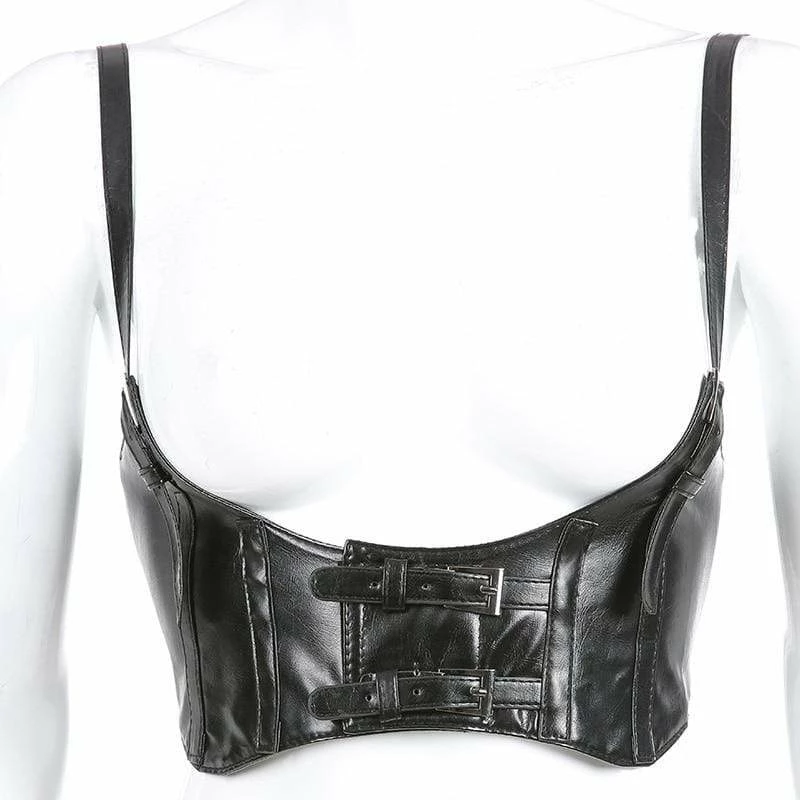 Kinky Cloth PU Leather Buckle Strap Cami Top Goth