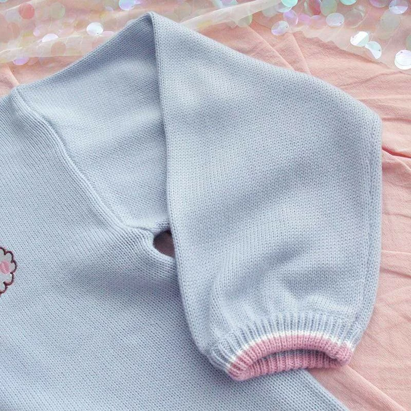 Be the first to review “Kinky Cloth Rabbit Embroidery V-neck Blue Sweater Kawaii” Cancel reply