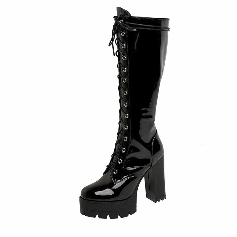 Kinky Cloth Shiny Knee High Boots