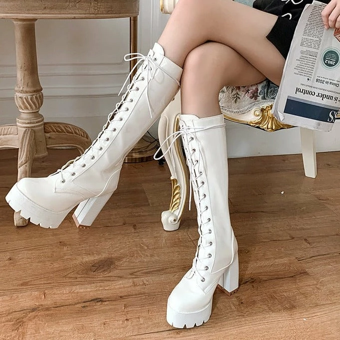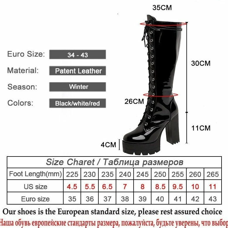 SKU: 7055528493144 Category: On Sale Tags: Fashion, High heels, Knee High, Ladies, Nightclub, Party Shoes, Patent Leather, White